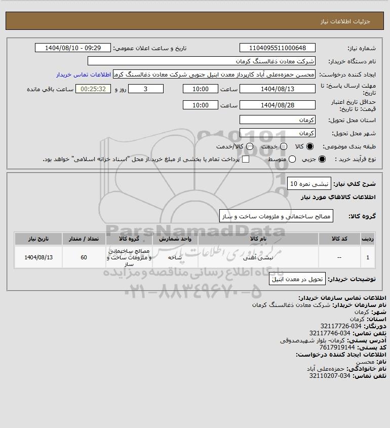 1 -- نبشی آهنی شاخه مصالح ساختمانی و ملزومات ساخت و ساز 60 1404/08/13