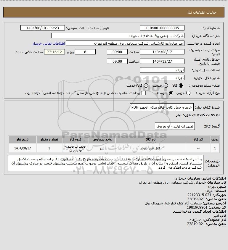 نام سازمان خریدار: شرکت سهامی برق منطقه ای تهران