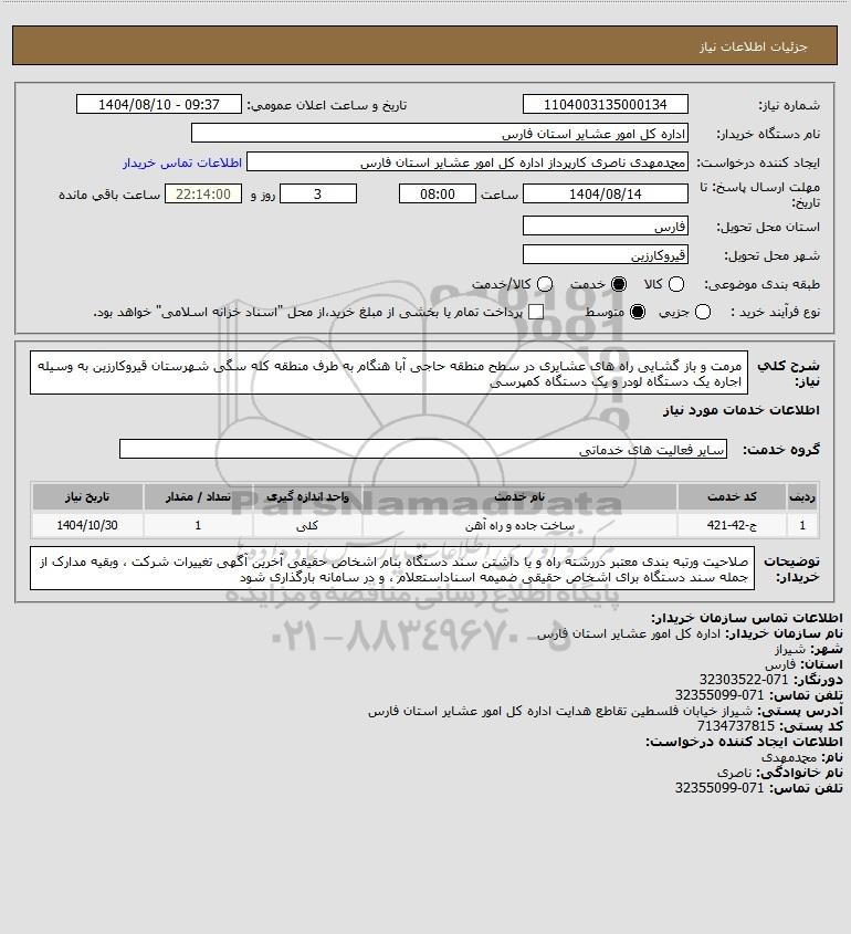 نام دستگاه خریدار:اداره کل امور عشایر استان فارس