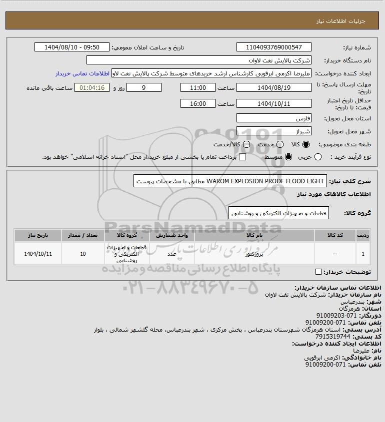 استعلام WAROM EXPLOSION PROOF FLOOD LIGHT مطابق با مشخصات پیوست, استعلام WAROM EXPLOSION PROOF FLOOD LIGHT مطابق با مشخصات پیوست