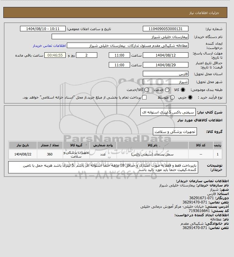 نام دستگاه خریدار:بیمارستان خلیلی شیراز