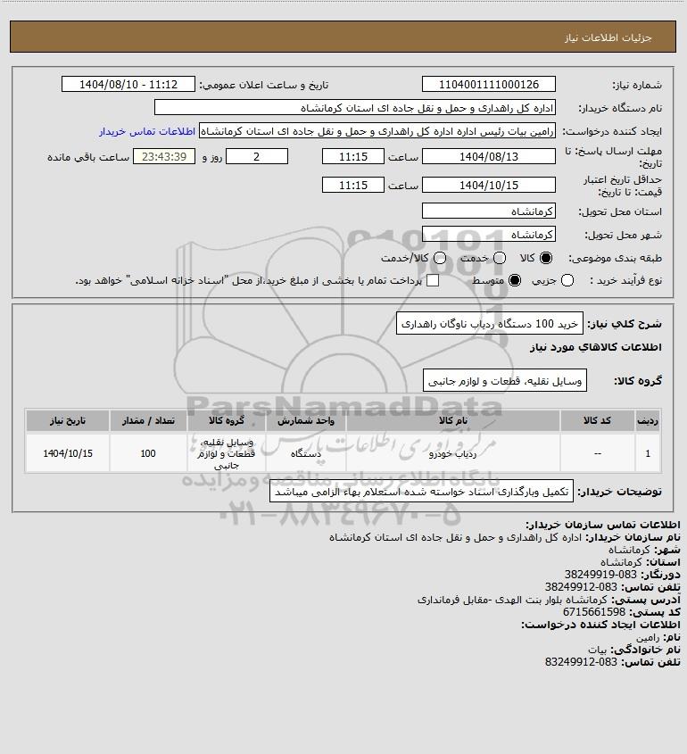 شرح کلی نیاز: خرید 100 دستگاه ردیاب ناوگان راهداری