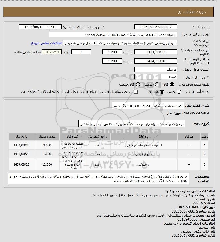 شرح کلی نیاز: خرید سیلندر ترافیکی بهمراه پیچ و رول پلاک و ...