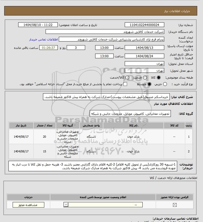 نام دستگاه خریدار:شرکت خدمات کالایی شهروند