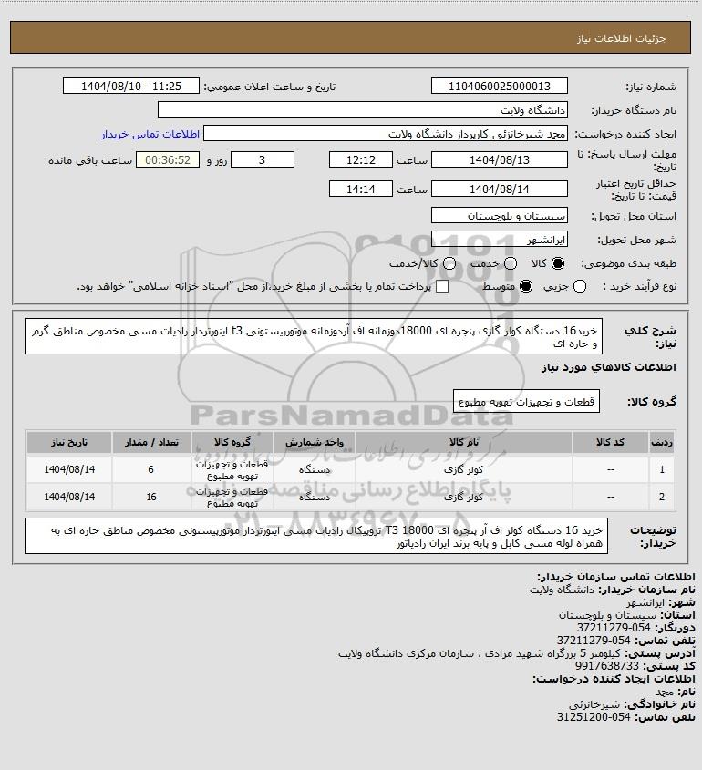 نام دستگاه خریدار:دانشگاه ولایت