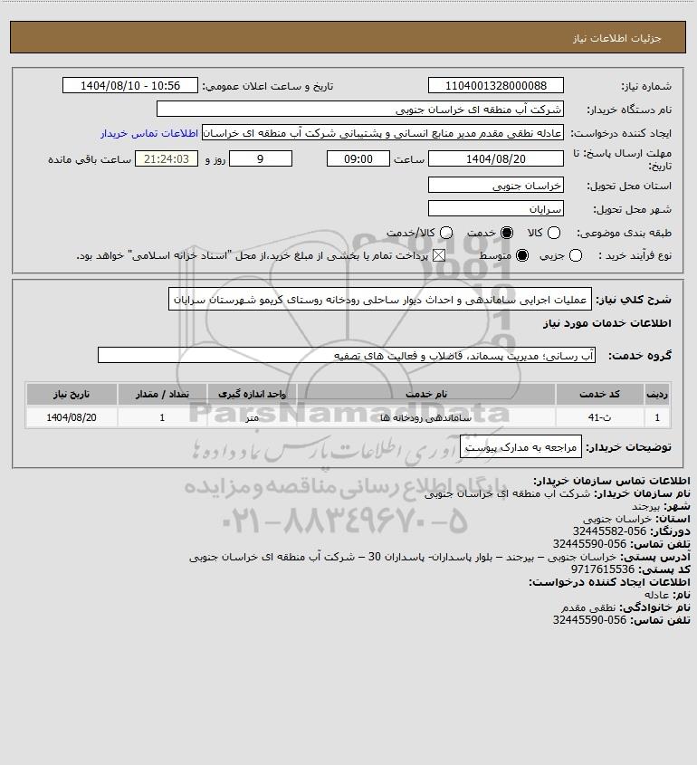 نام دستگاه خریدار:شرکت آب منطقه ای خراسان جنوبی