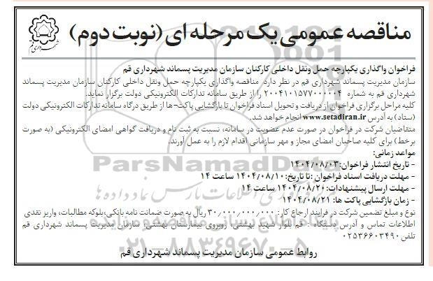 فراخوان واگذاری یکپارچه حمل و نقل داخلی کارکنان سازمان مدیریت پسماند شهرداری قم