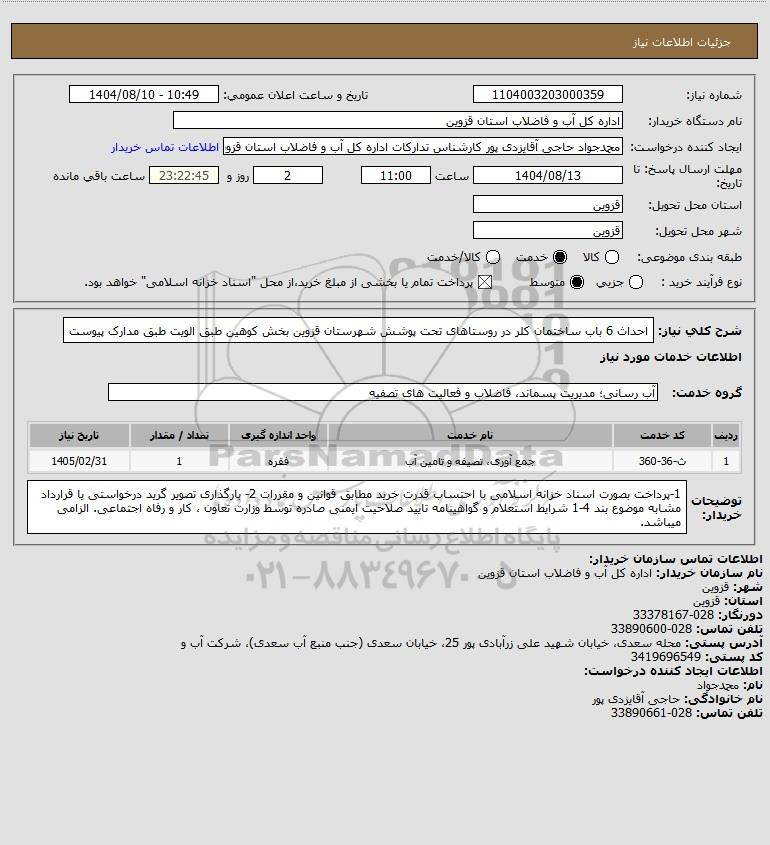نام دستگاه خریدار:اداره کل آب و فاضلاب استان قزوین