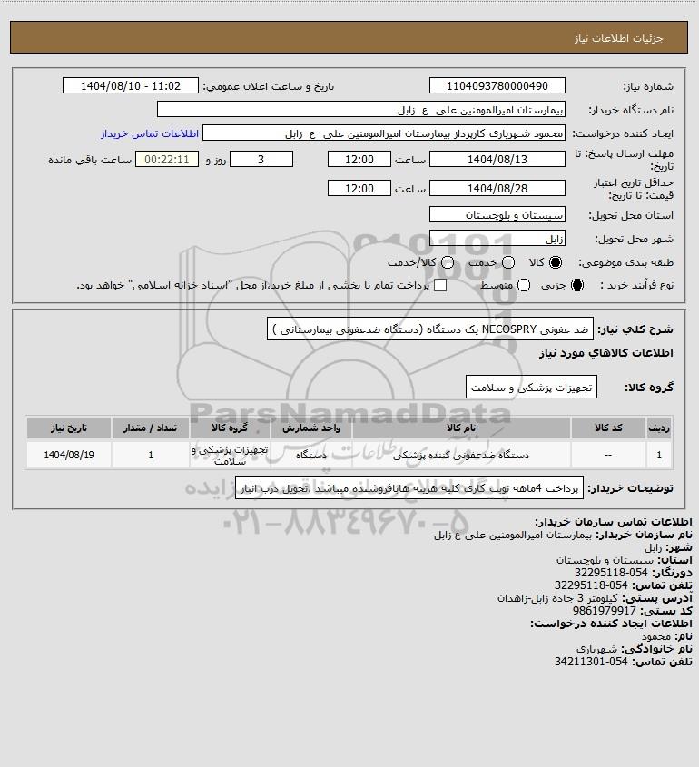 نام دستگاه خریدار:بیمارستان امیرالمومنین علی ع زابل