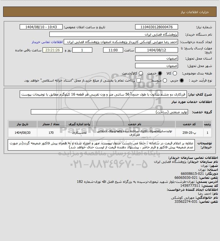 نام دستگاه خریدار:پژوهشگاه فضایی ایران