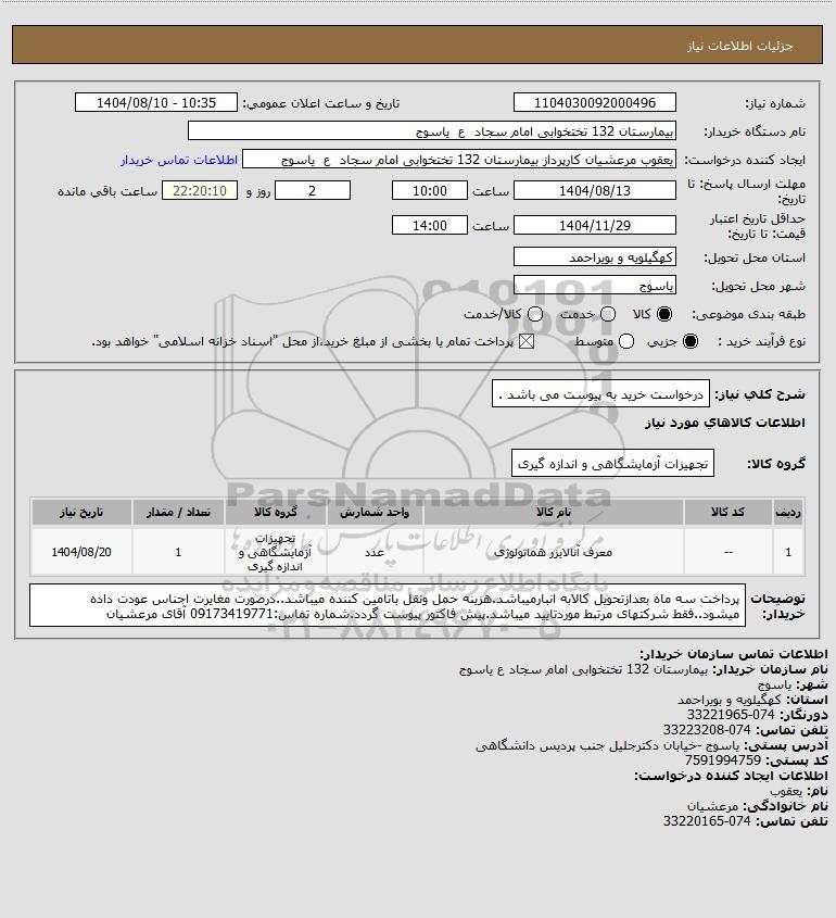 نام دستگاه خریدار:بیمارستان 132 تختخوابی امام سجاد ع یاسوج