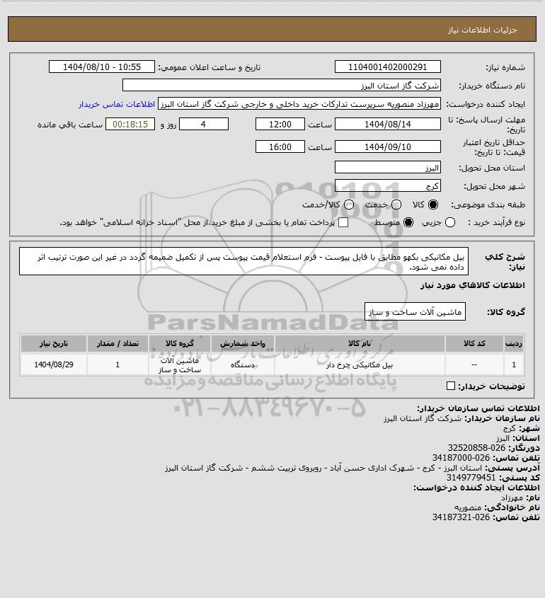 نام دستگاه خریدار:شرکت گاز استان البرز