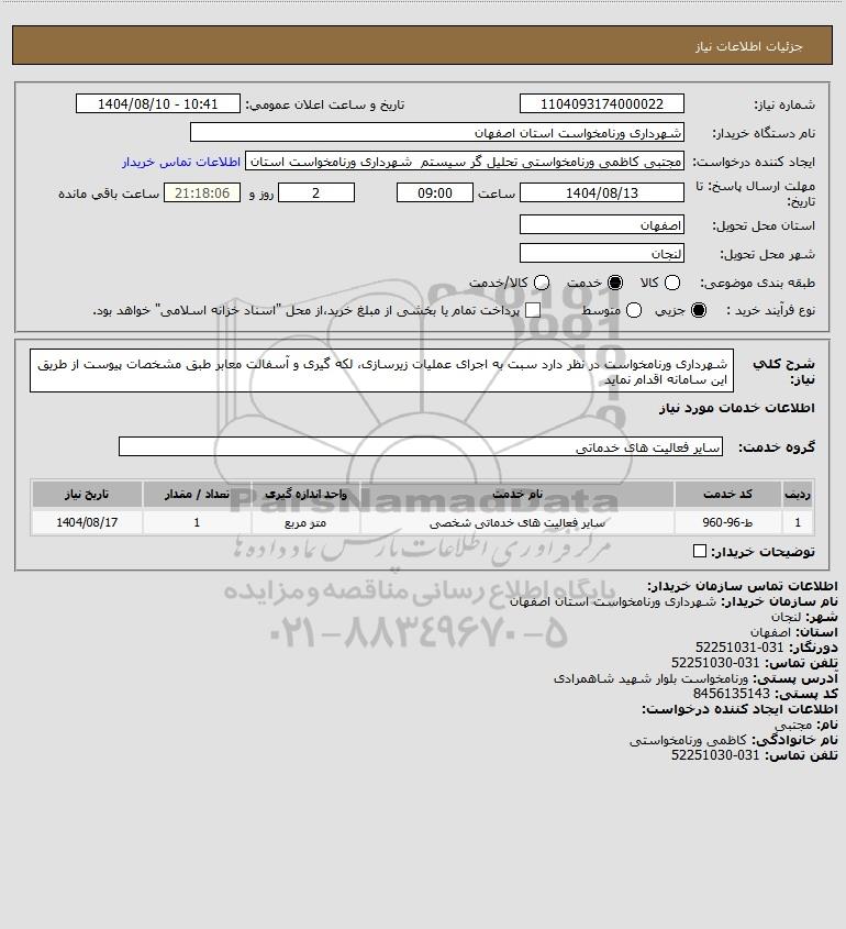 شرح کلی نیاز: شهرداری ورنامخواست در نظر دارد سبت به اجرای عملیات زیرسازی، لکه گیری و آسفالت معابر طبق مشخصات پیوست از طریق این سامانه اقدام نماید