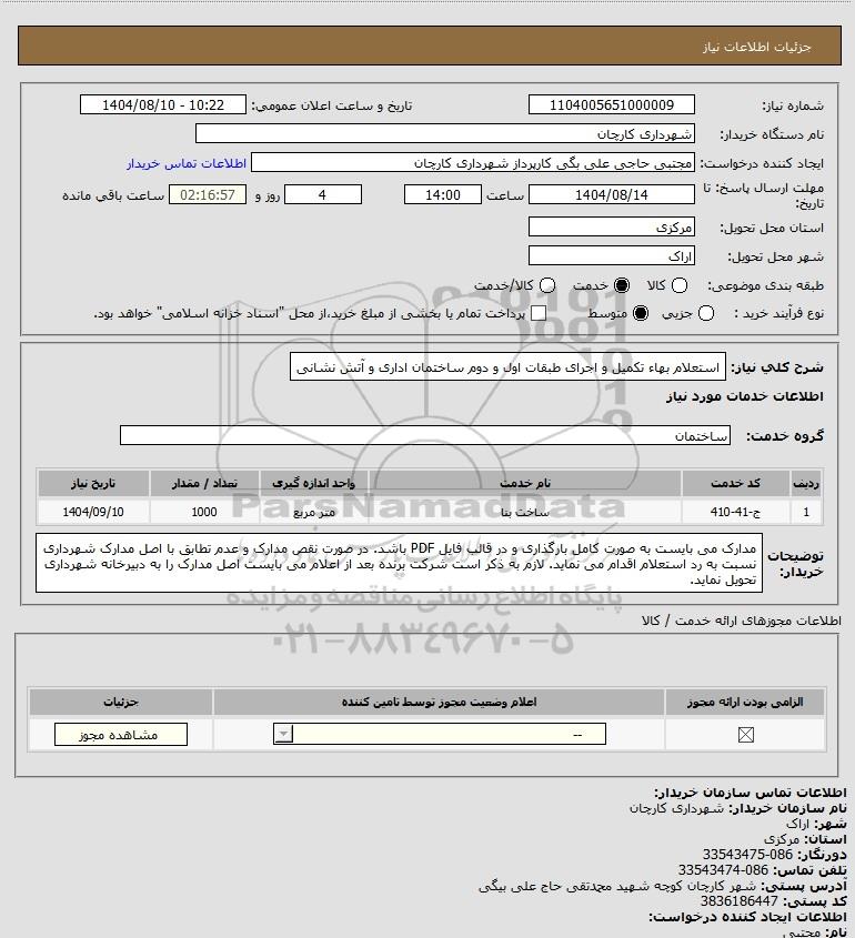 شرح کلی نیاز: استعلام بهاء تکمیل و اجرای طبقات اول و دوم ساختمان اداری و آتش نشانی