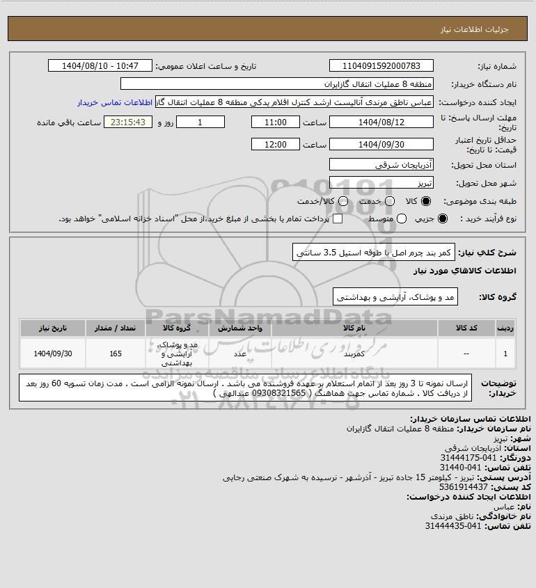 نام سازمان خریدار: منطقه 8 عملیات انتقال گازایران