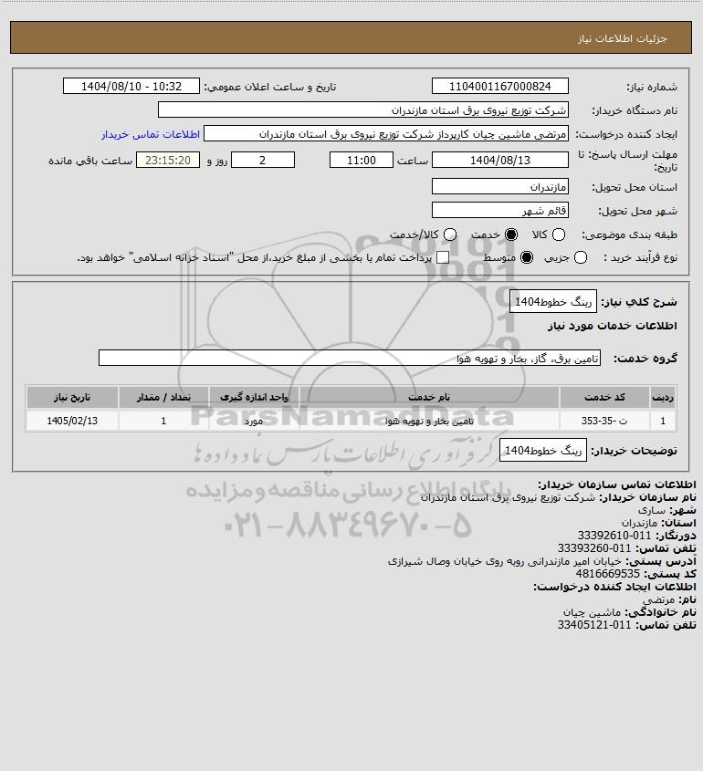 نام دستگاه خریدار:شرکت توزیع نیروی برق استان مازندران
