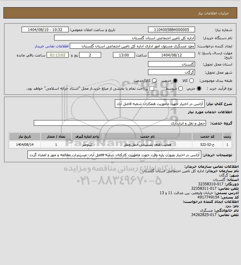 نام دستگاه خریدار:اداره کل تامین اجتماعی استان گلستان