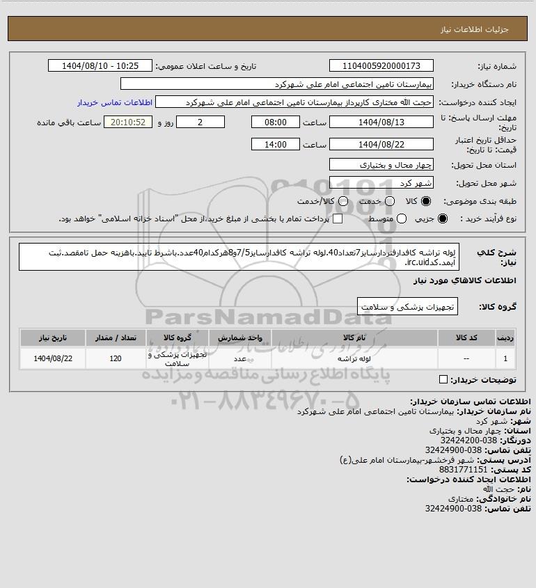 نام دستگاه خریدار:بیمارستان تامین اجتماعی امام علی شهرکرد