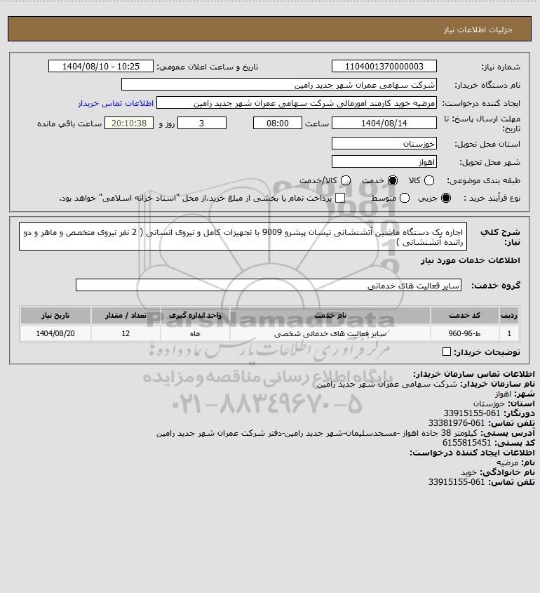 نام دستگاه خریدار:شرکت سهامی عمران شهر جدید رامین