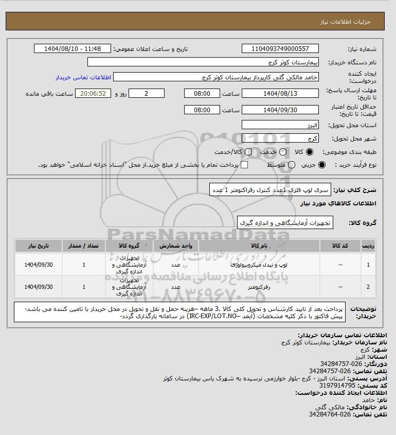 | 2 | -- | رفرکتومتر | عدد | تجهیزات آزمایشگاهی و اندازه گیری | 1 | 1404/09/30 |