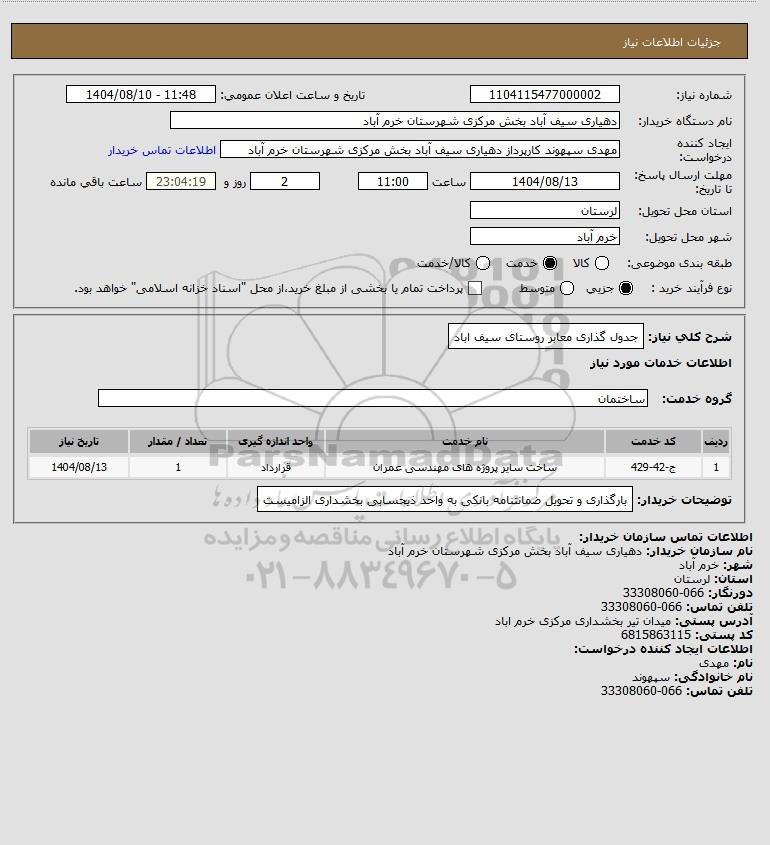نام دستگاه خریدار:دهیاری سیف آباد بخش مرکزی شهرستان خرم آباد