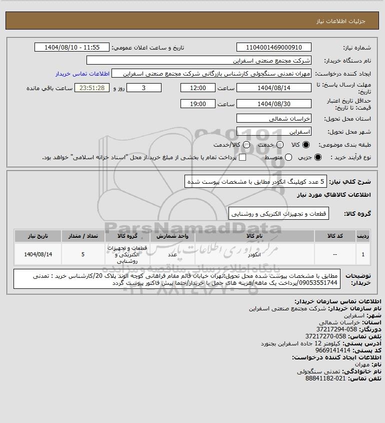 نام دستگاه خریدار:شرکت مجتمع صنعتی اسفراین