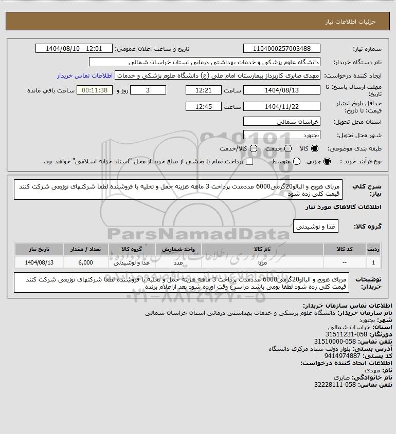 نام دستگاه خریدار:دانشگاه علوم پزشکی و خدمات بهداشتی درمانی استان خراسان شمالی