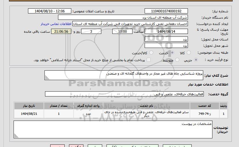 نام دستگاه خریدار:شرکت آب منطقه ای استان یزد