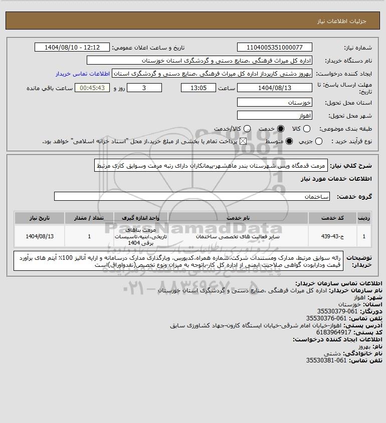نام دستگاه خریدار:اداره کل میراث فرهنگی ،صنایع دستی و گردشگری استان خوزستان