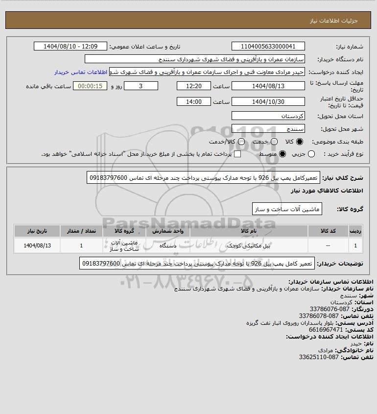 نام دستگاه خریدار:سازمان عمران و بازآفرینی و فضای شهری شهرداری سنندج