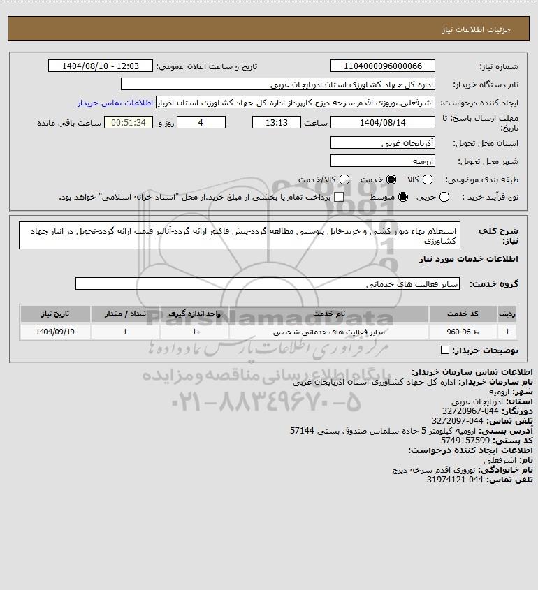 نام دستگاه خریدار:اداره کل جهاد کشاورزی استان اذربایجان غربی