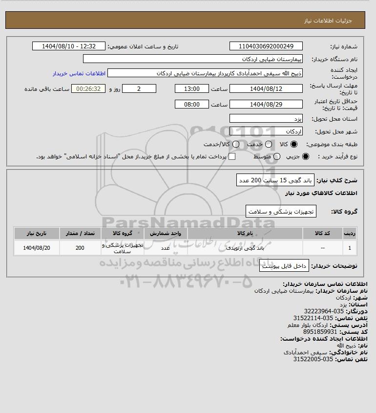| 1 | -- | باند گچی ارتوپدی | عدد | تجهیزات پزشکی و سلامت | 200 | 1404/08/20 |