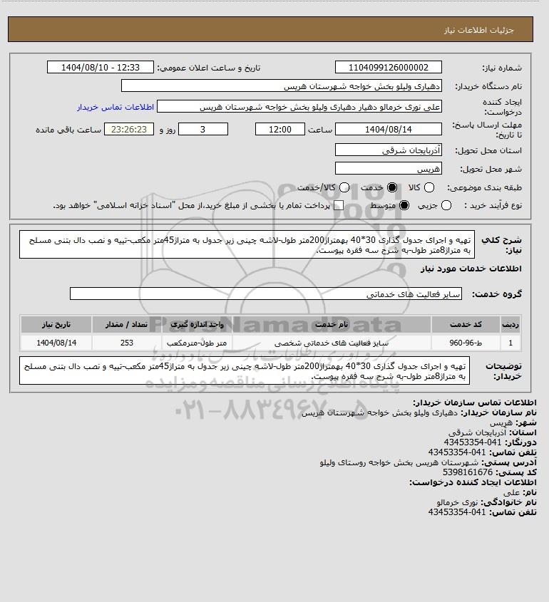 نام دستگاه خریدار:دهیاری ولیلو بخش خواجه شهرستان هریس