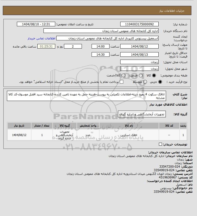 نام دستگاه خریدار:اداره کل کتابخانه های عمومی استان زنجان