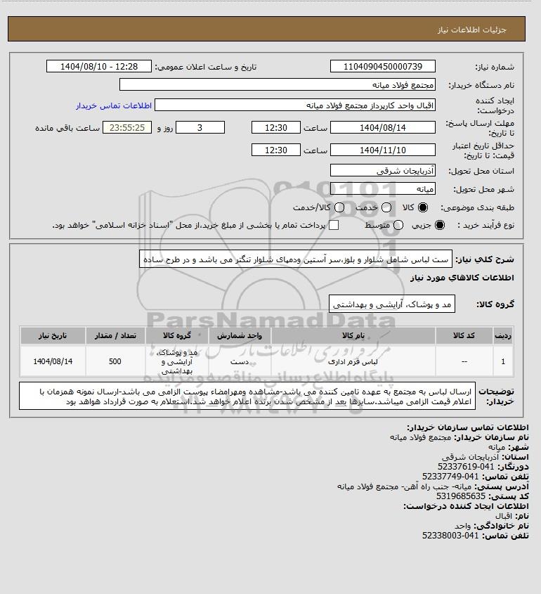 نام سازمان خریدار: مجتمع فولاد میانه