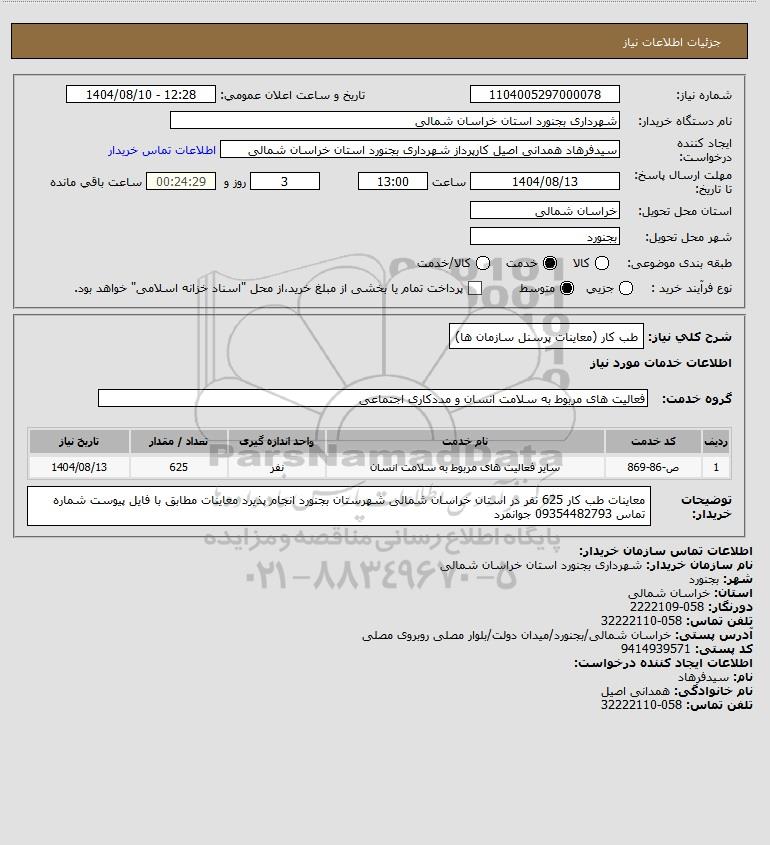 توضیحات خریدار:معاینات طب کار 625 نفر