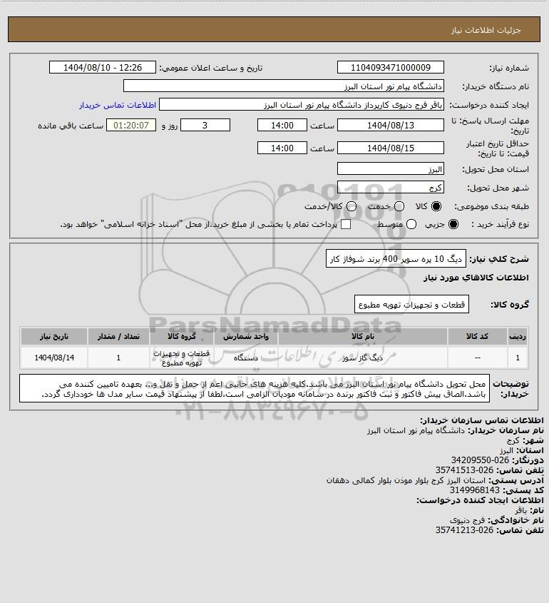 نام دستگاه خریدار:دانشگاه پیام نور استان البرز