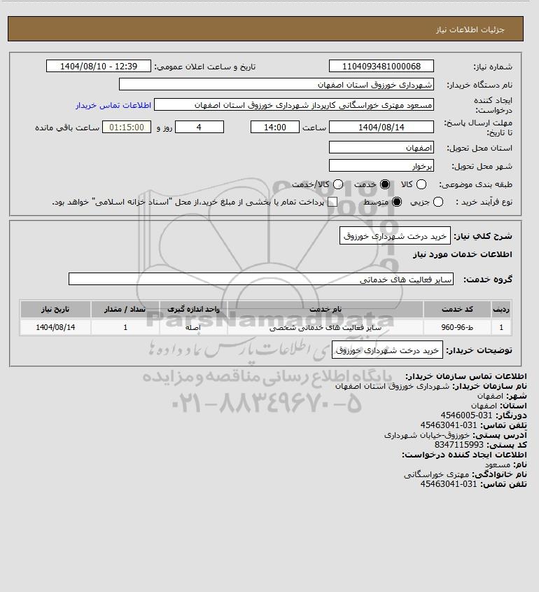 شرح کلی نیاز: خرید درخت شهرداری خورزوق