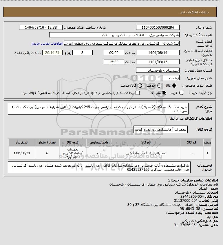 نام دستگاه خریدار:شرکت سهامی برق منطقه ای سیستان و بلوچستان