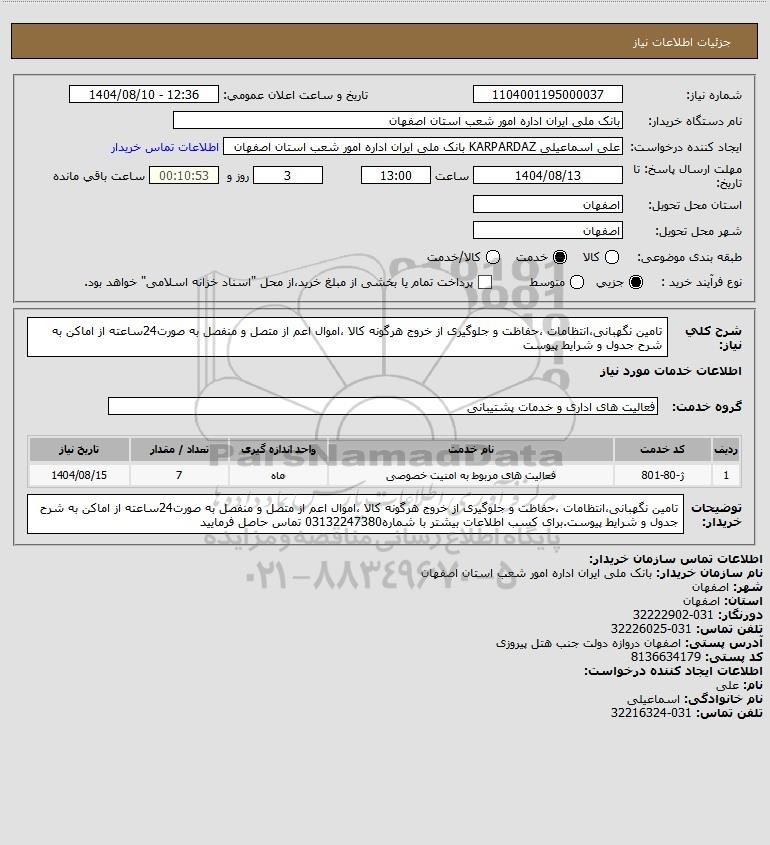 نام دستگاه خریدار:بانک ملی ایران اداره امور شعب استان اصفهان