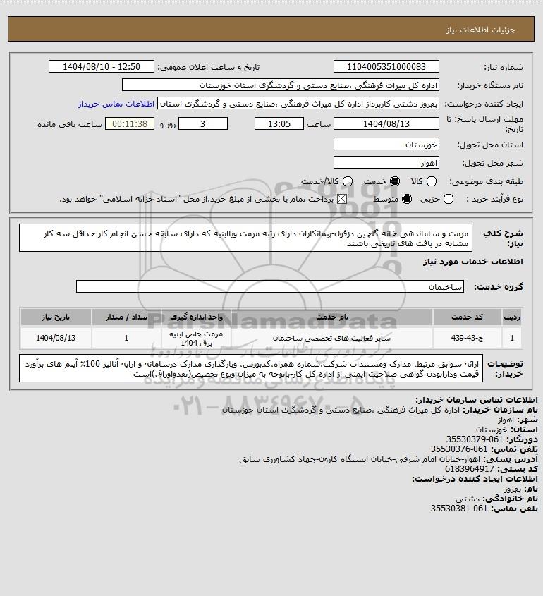 نام دستگاه خریدار:اداره کل میراث فرهنگی ،صنایع دستی و گردشگری استان خوزستان