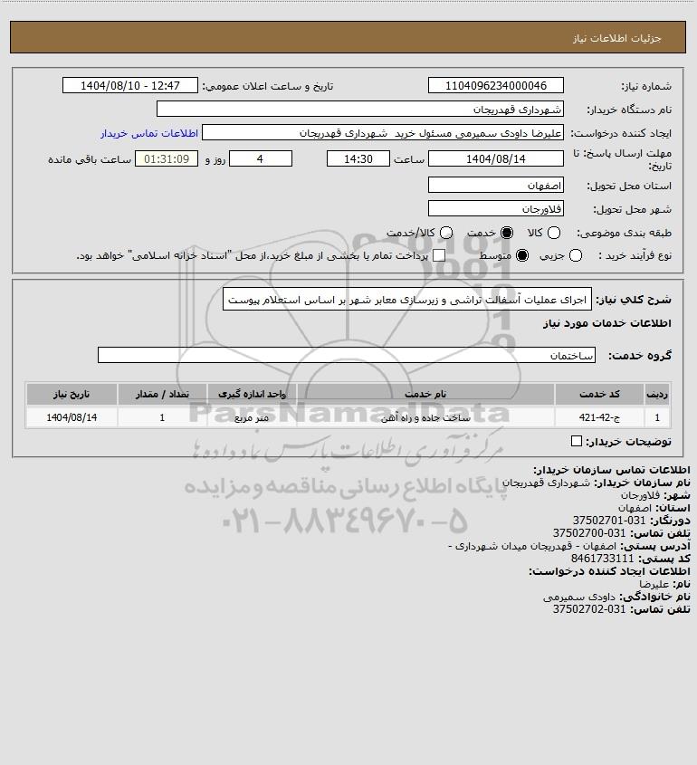شرح کلی نیاز: اجرای عملیات آسفالت تراشی و زیرسازی معابر شهر بر اساس استعلام پیوست