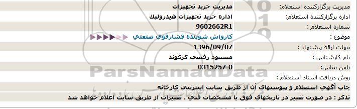 اداره برگزارکننده استعلام: اداره خرید تجهیزات هیدرولیک