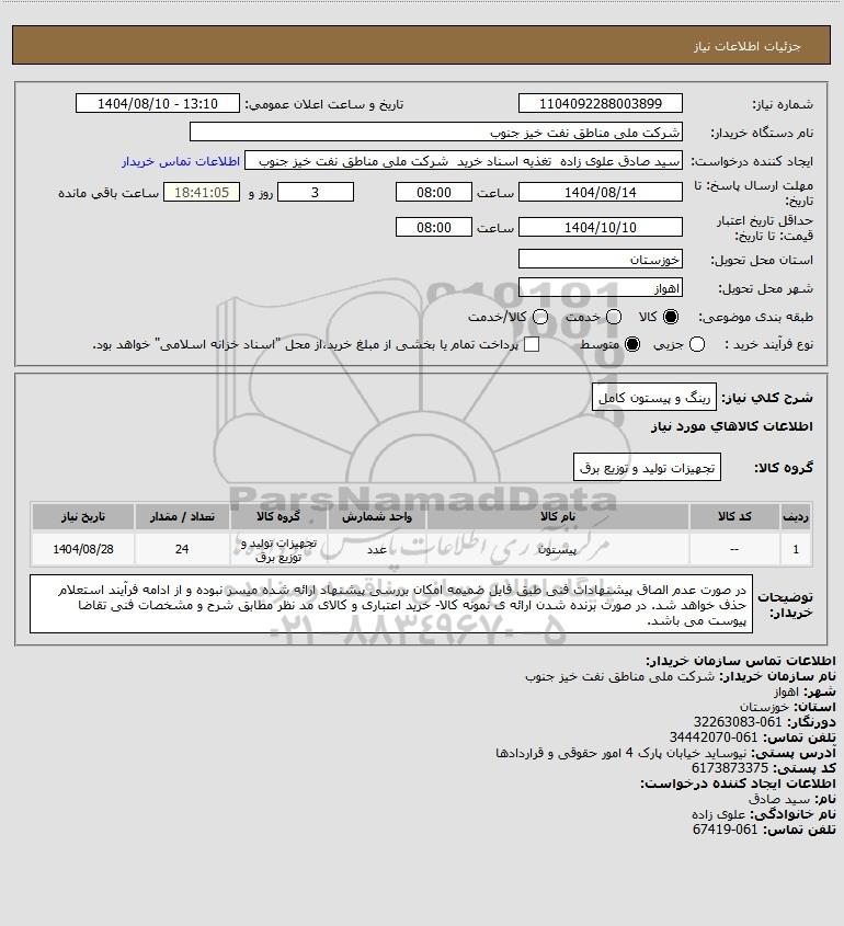 نام دستگاه خریدار:شرکت ملی مناطق نفت خیز جنوب