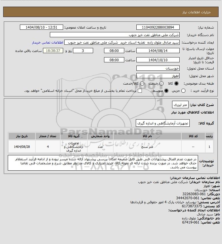 نام دستگاه خریدار:شرکت ملی مناطق نفت خیز جنوب