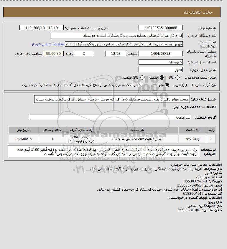 نام دستگاه خریدار:اداره کل میراث فرهنگی ،صنایع دستی و گردشگری استان خوزستان
