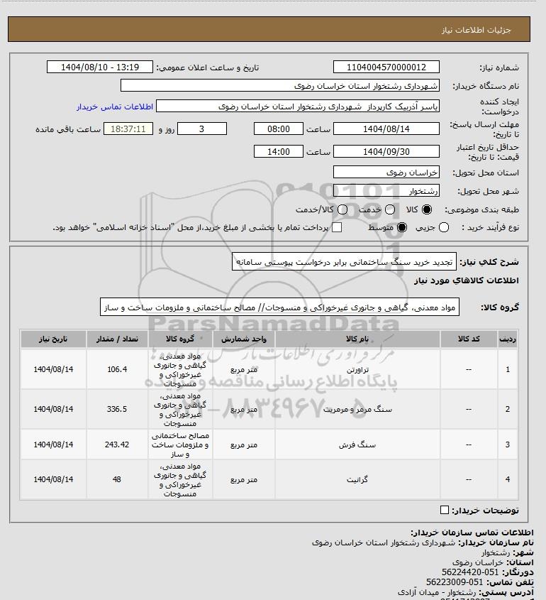 شرح کلی نیاز: تجدید خرید سنگ ساختمانی برابر درخواست پیوستی سامانه