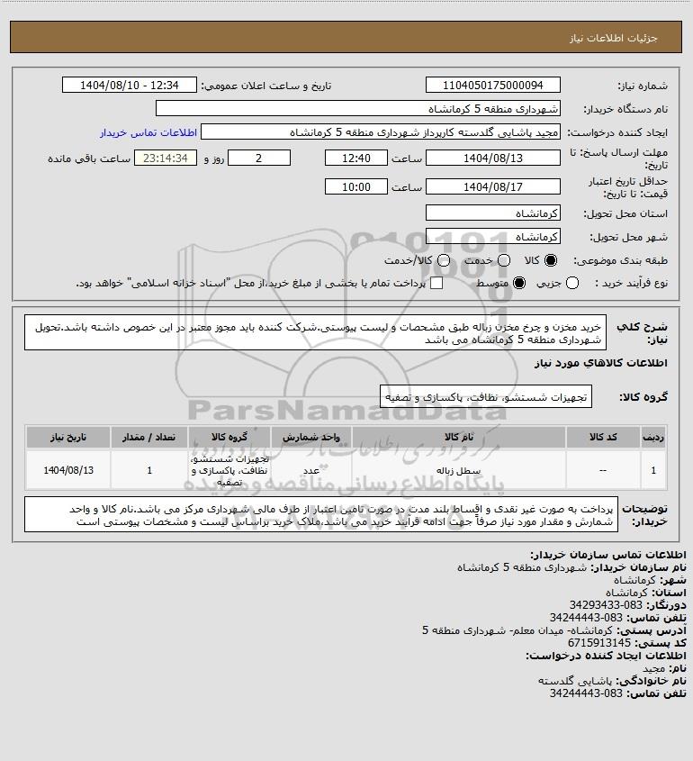 نام دستگاه خریدار:شهرداری منطقه 5 کرمانشاه