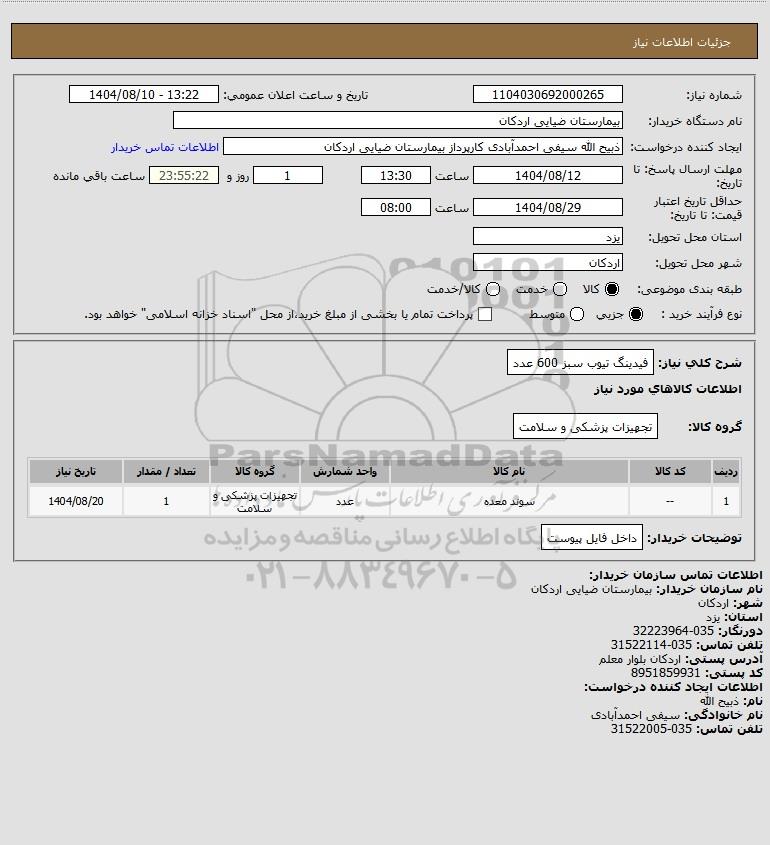 شرح کلی نیاز: فیدینگ تیوب سبز 600 عدد