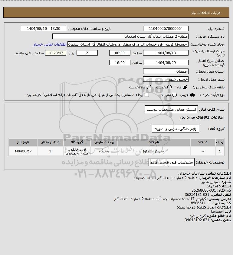 شرح کلی نیاز: اسپیکر مطابق مشخصات پیوست